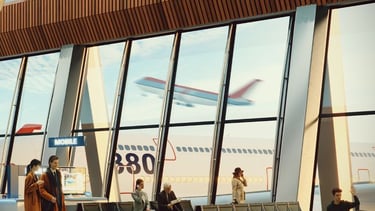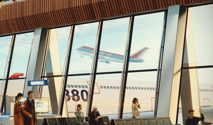 Man checking flight details on phone at airport lounge, illustrating customer confidence.
